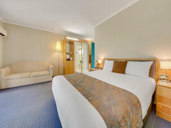 This room type has one queen bed and can accomodate upto two guests. The rooms are serviced weekly or can be serviced by request. This room type has a kitchenette with sink in the main room. There are various items of cutlery, crockery and other items in the cupboards of the kitchenette.